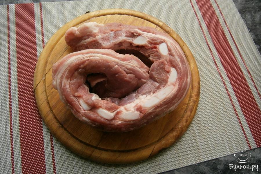 - Свиные ребрышки помоем под проточной водой и обсушим бумажным полотенцем.