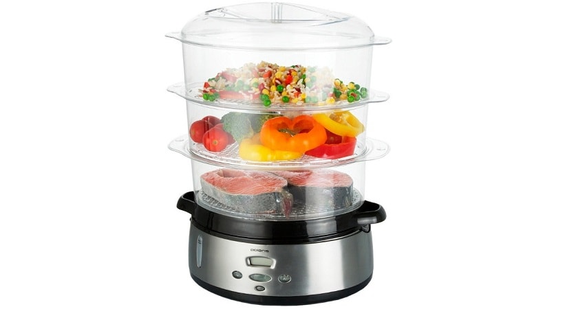 - Многоуровневые модели предназначены для одновременного приготовления нескольких блюд. Это удобно, одна требует определенных знаний. В нижнюю корзину помещаются продукты, приготовление которых занимает большое количество времени. Делается это для того, чтобы быстроготовящееся можно было либо раньше снять, либо позже поставить. Следует помнить также о том, что за не имением отдельных поддонов для каждого уровня, продукты, смешивание которых нежелательно, нужно готовить отдельно, иначе сок с верхнего яруса стечет на нижний.