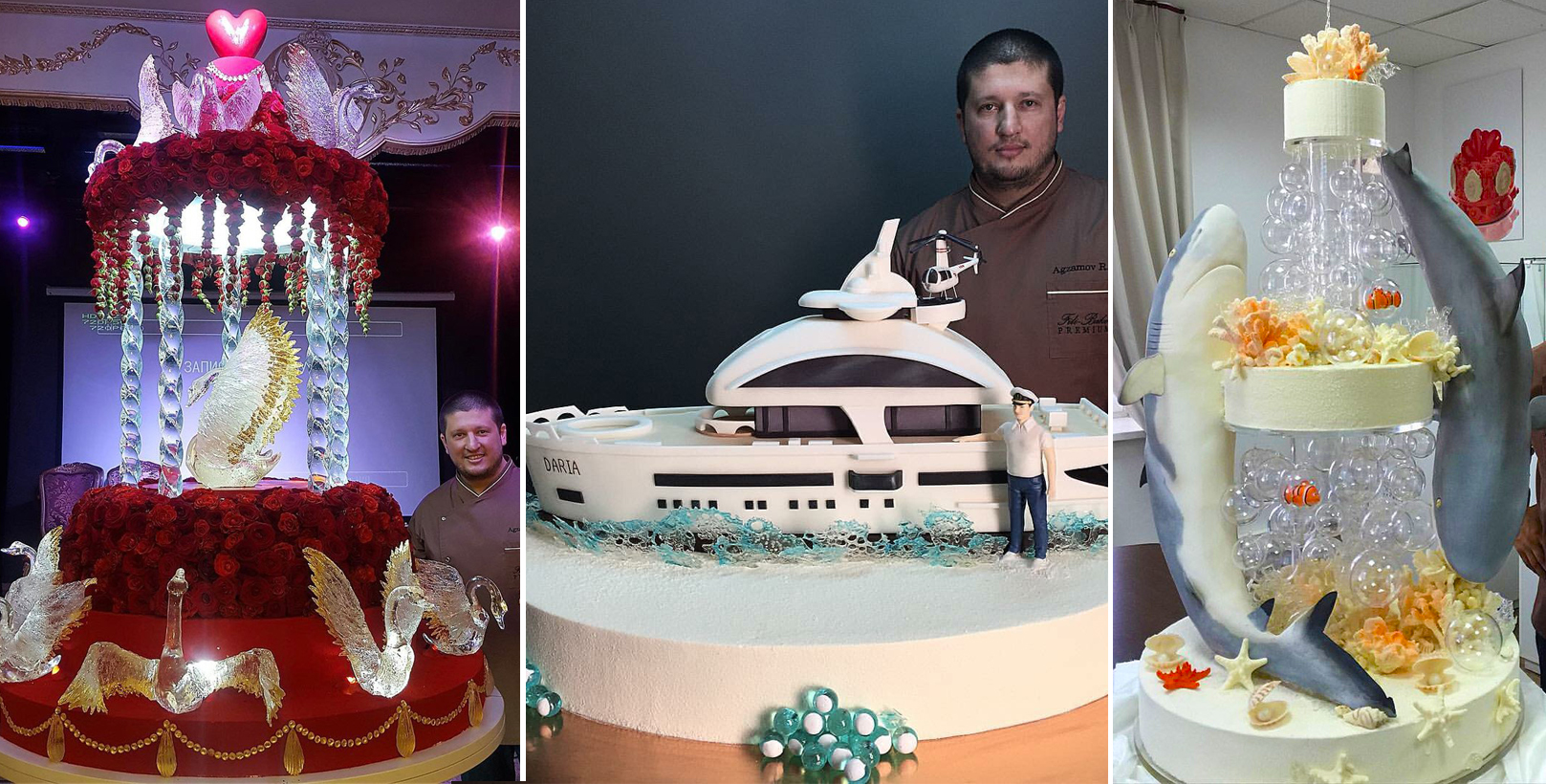 Агзамов создал невероятное: его торты парят в воздухе, сияют, весят несколько тонн и никогда не повторяются.