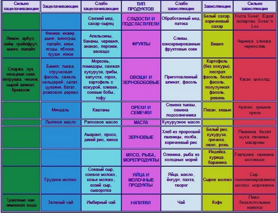 Таблицы закисляющих и ощелачивающих продуктов