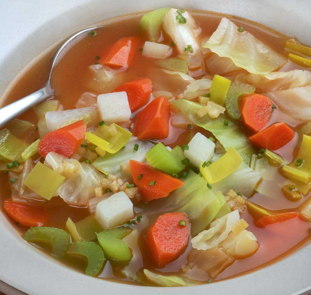 Суп с китайской капустой, зеленью и овощами готовят так: