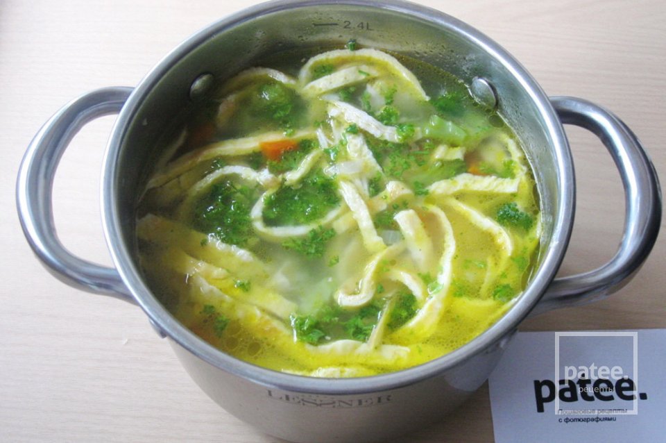 Суп с яичными блинчиками: состав, калорийность и пищевая ценность на 100 г