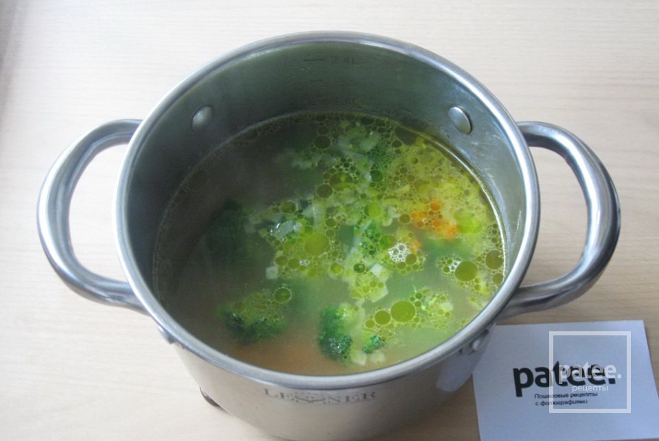 Затем отправляем брокколи и варим 10 минут до готовности моркови, лука и капусты.