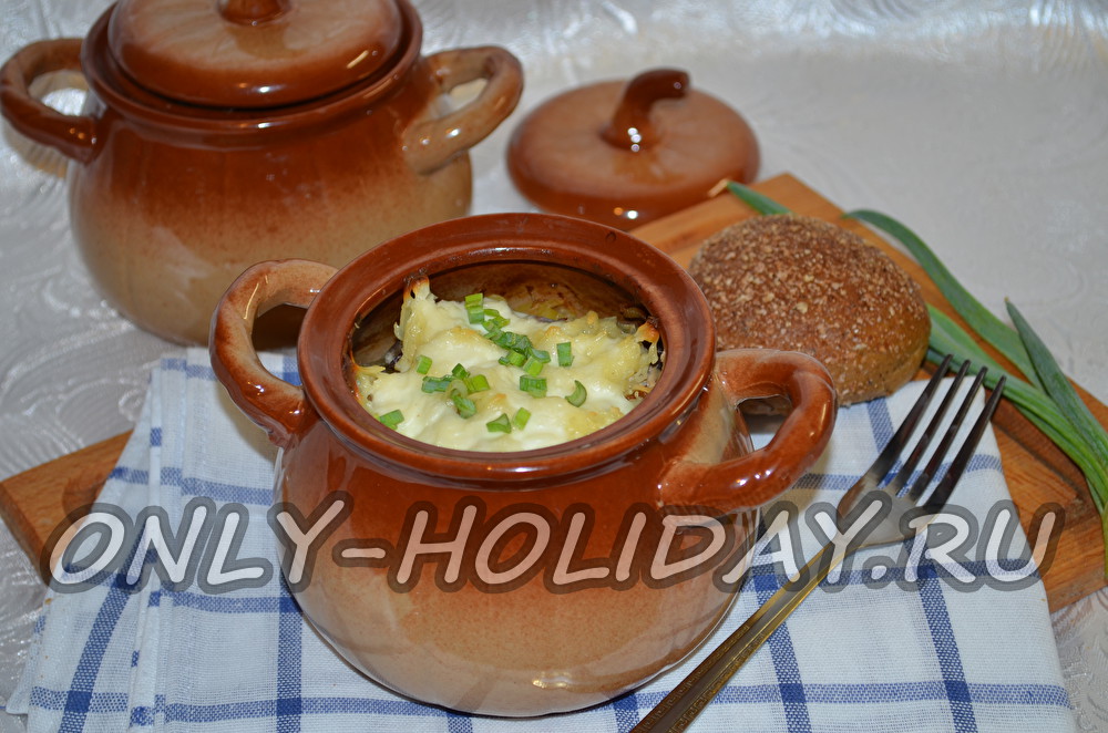 Рецепт 8: мясо с грибами и сметаной в горшочках