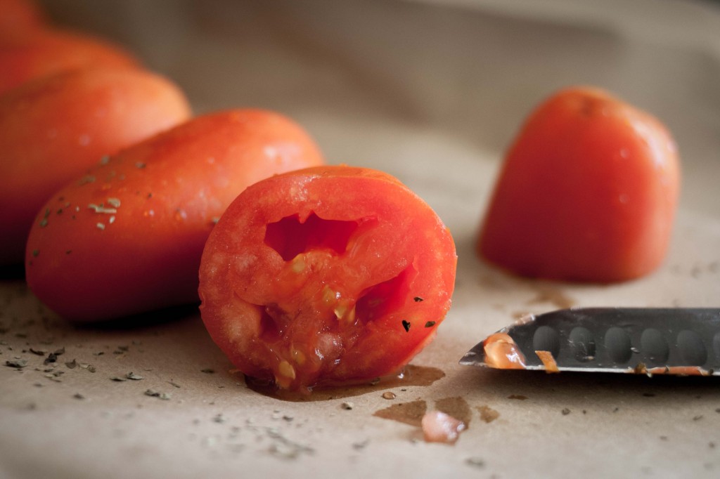 Помидоры лучше брать не очень сочные – мясистые, упругие, твердые, но ни в коем случае не недозрелые. Оптимально подходит сорт «Сливка».
