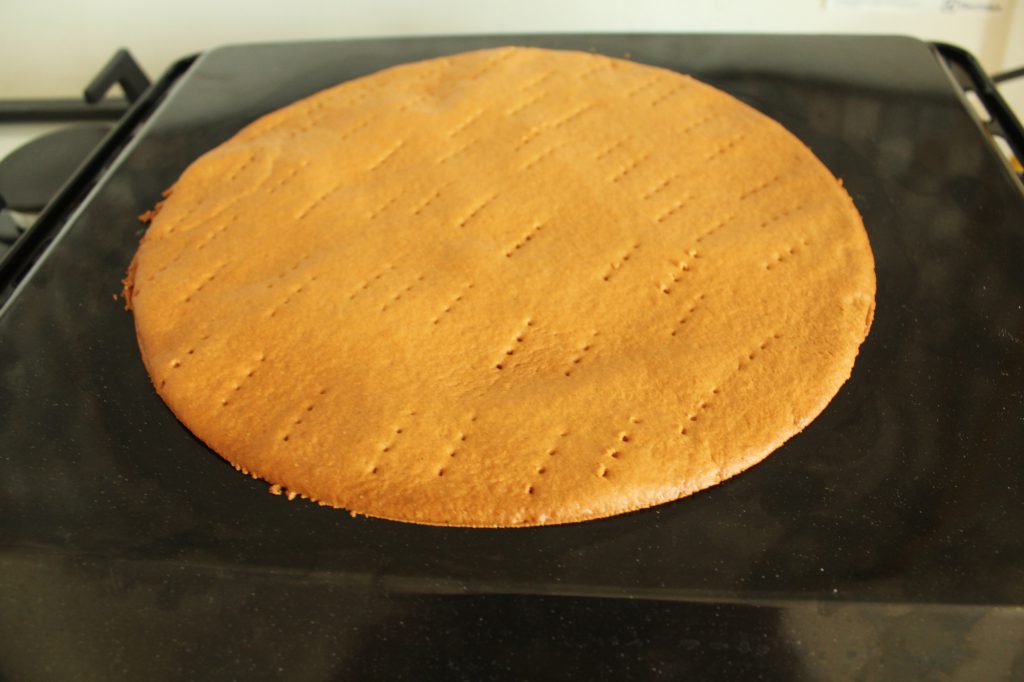 Отправляем будущий корж в предварительно разогретый до 180 градусов духовой шкаф. На три-пять минут, в зависимости от мощности плиты.
