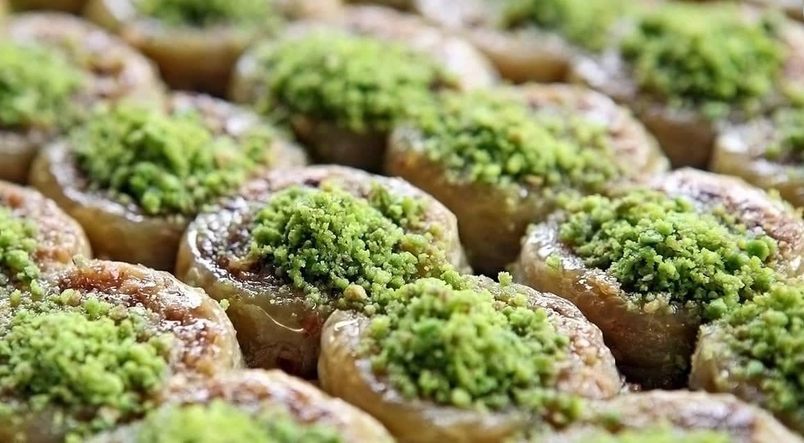 - Дурюм. Этот вид пахлавы не перепутаешь с другими. Она скручена в рулет и имеет насыщенный зеленый цвет.