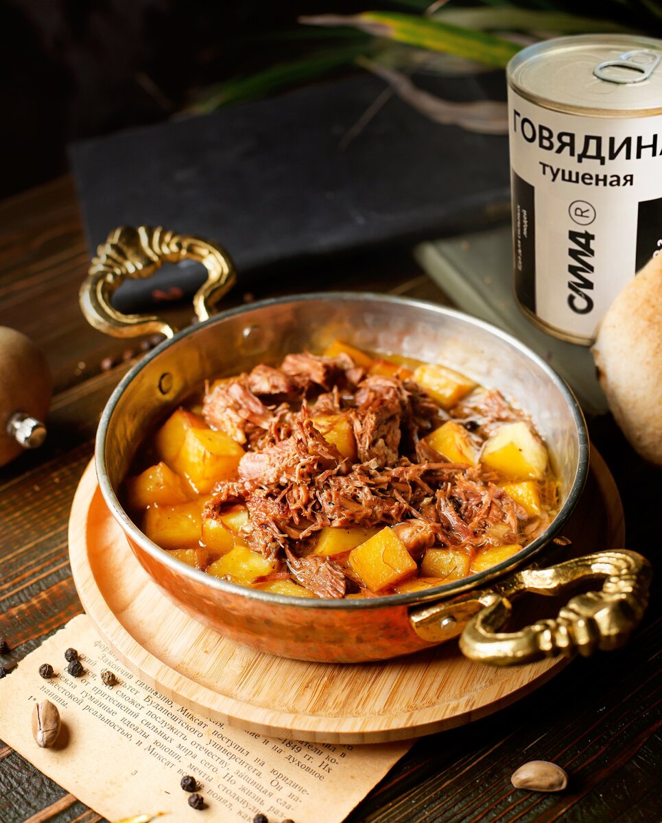 Для этого рецепта я использовала домашнюю тушенку собственного приготовления, но также отлично подходит и магазинная. Главное — купить свежую и качественную тушенку проверенного производителя.