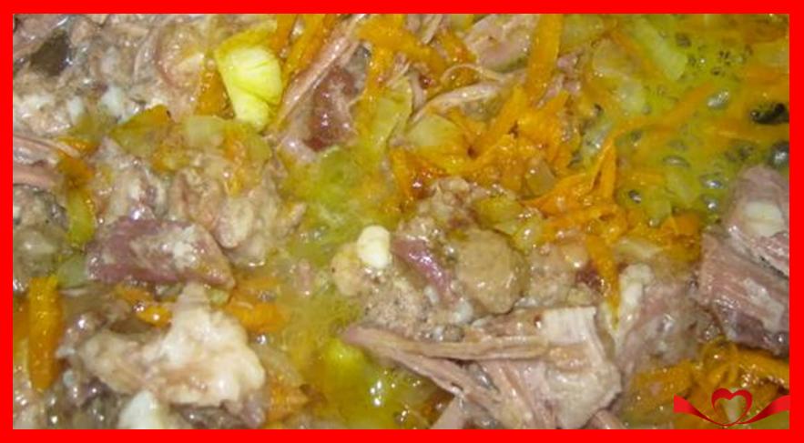 Нам понадобится не только мясо, но и жир, который есть в банке. Не переживайте, в данном случае он не будет лишним.