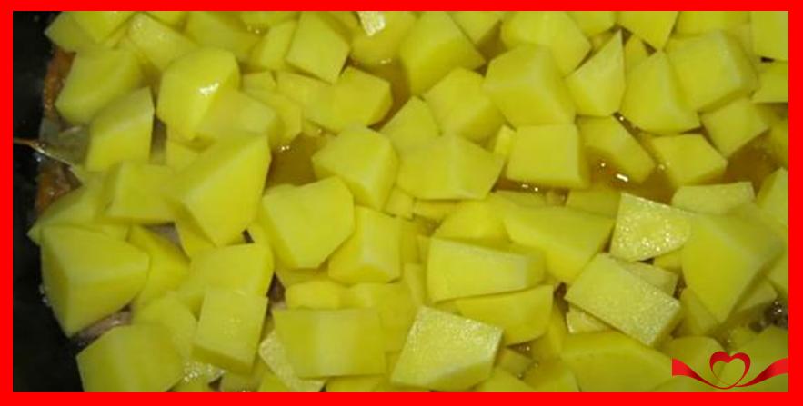 - Картошку очистить, вымыть. Порезать средними кубиками.