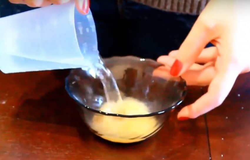 - Берем 100 миллилитров воды (должна быть горячей). Разводим в ней желатин. Необходимо, чтобы он набух и остыл.