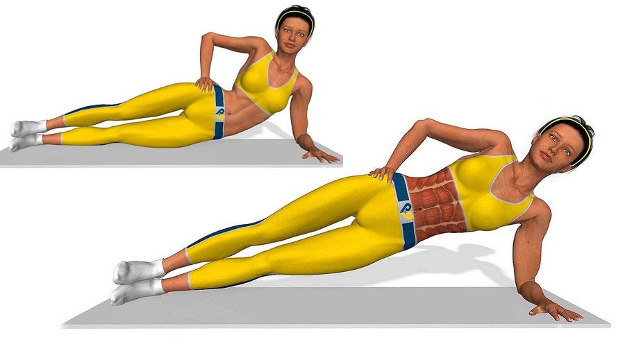 Опираясь на локоть, держите тело вытянутым в прямую линию от макушки до пальцев ног, поддерживая мышцы бокового пресса в напряжении. Во время выполнения упражнения сохраняйте нормальный ритм дыхания и следите, чтобы таз не опускался слишком низко // 20-30 секунд на левую и 20-30 секунд на правую стороны тела. Суммарно 2-3 подхода.