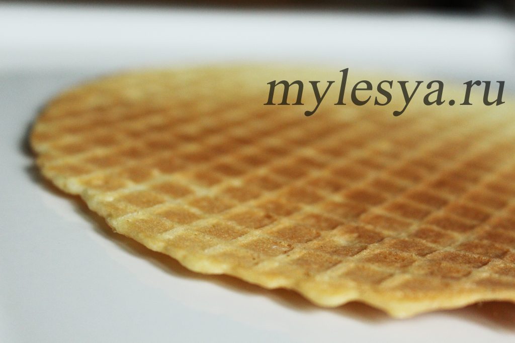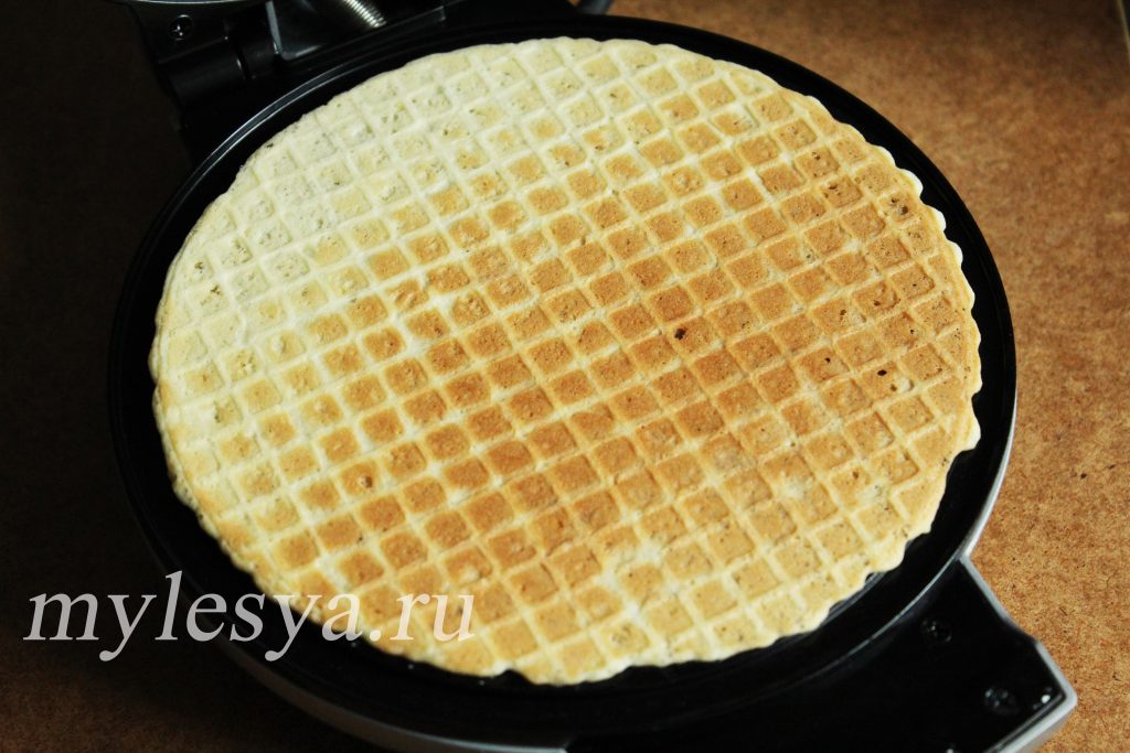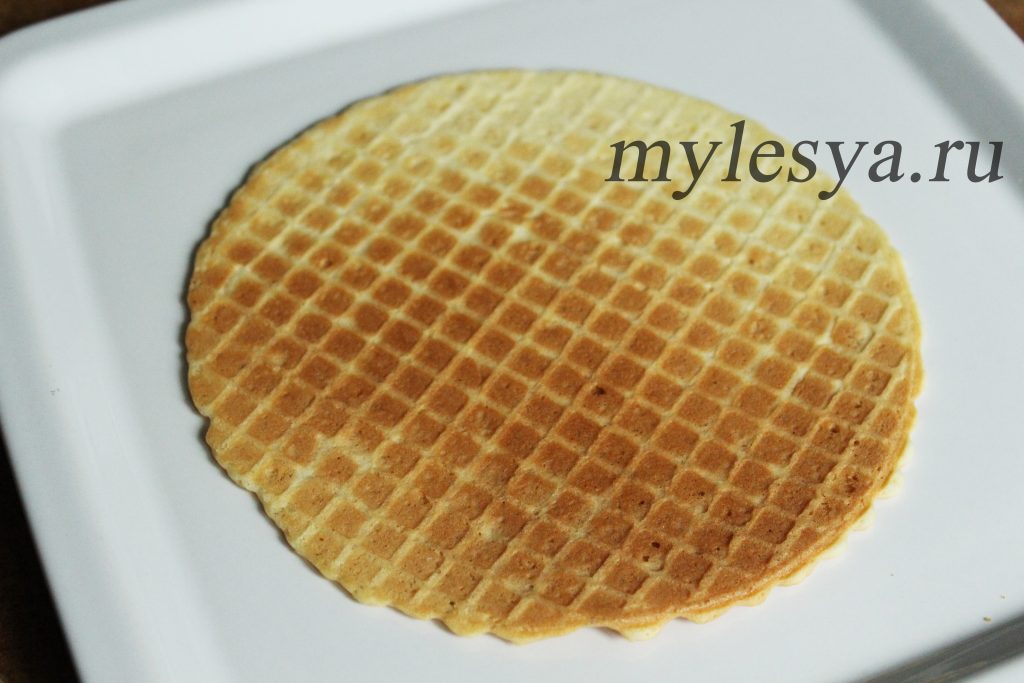 Если Вы не планируете сворачивать вафлю, например, в трубочку, то разумеется оставляем её на тарелке и приступаем к выпеканию следующей.