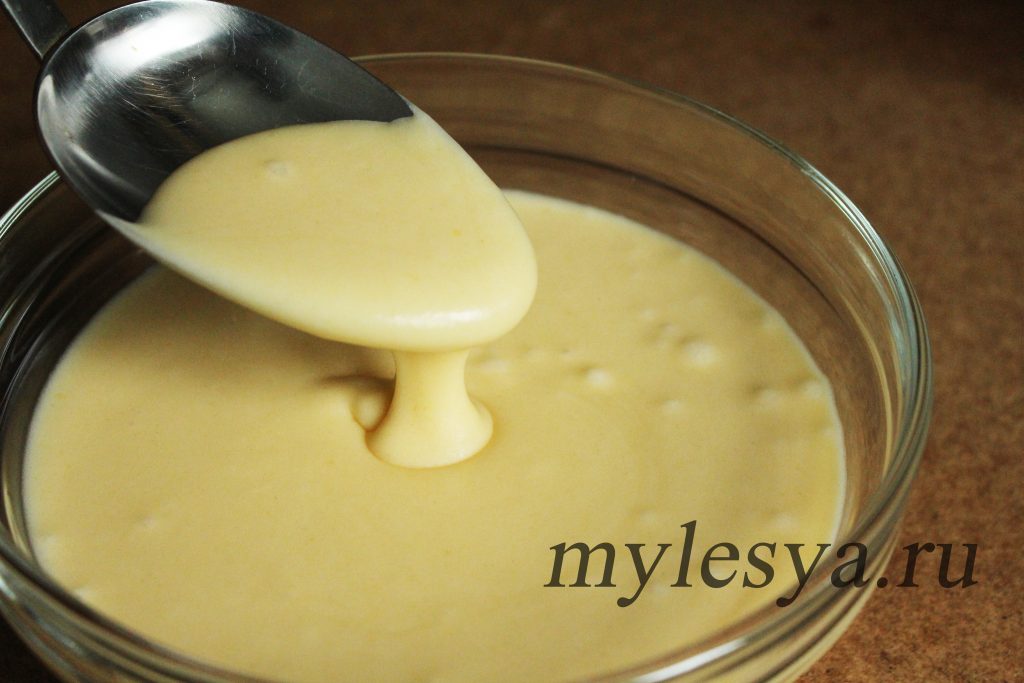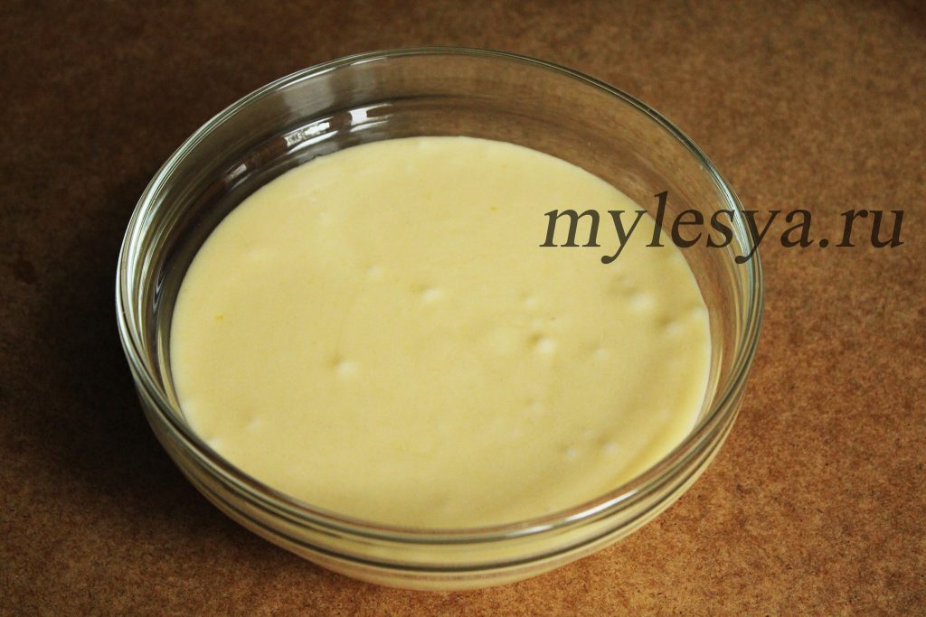 Масса получается достаточно густая, похожая на сгущённое молоко. Готовое тесто пока отставляем в сторону.
