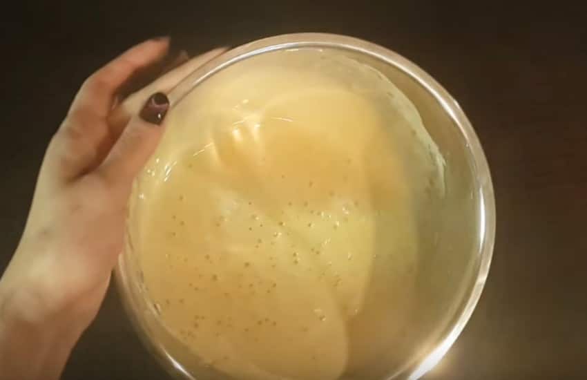 Замешивайте тесто до однородного и без комочков состояния. Консистенция теста должна получиться, как густая сметана. Оставьте тесто на 15 минут.