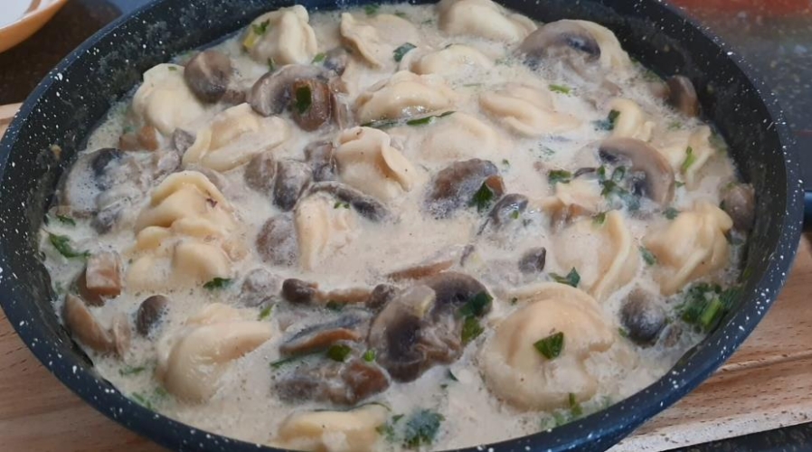 Пельмени представляют собой полуфабрикат, который можно приготовить быстро и оригинально. Безумно вкусное блюдо отличается от своих аналогов тем, что полуфабрикаты в нем не варят и не жарят, а томят с лесными грибами и соусом на основе сметаны.