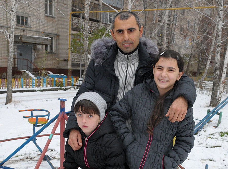 - Анна Искандарова, Ниматулло Искандаров, отец Анны, и Ирина Андрущак